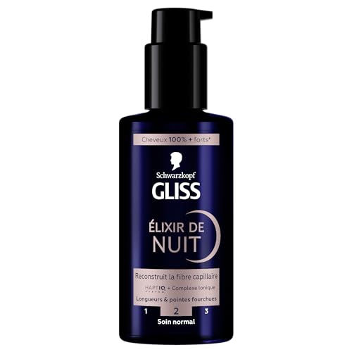 Schwarzkopf - GLISS - Elixir de Nuit - Reconstruit la Fibre Capillaire - Haptiq System - Complexe Ionique - Longueurs & Pointes Fourchues - Cheveux 100% Plus Forts - Soin Normal - Sans Rinçage - 100ml
