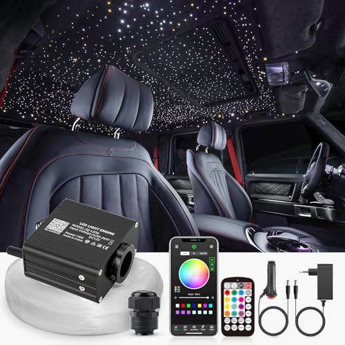 SUNKENET 32W Meteor Twinkle Fibre Optique Lumineuse, 1000pcs*0.75mm*4m Fibre Optique Bluetooth//Télécommande, ciel étoilé voiture +Kit d'éclairage pour étoile filante Pour Voiture/Maison