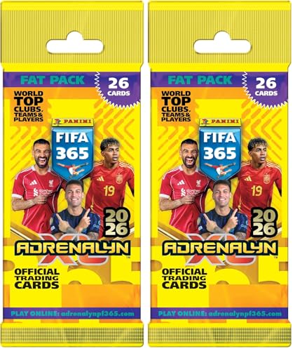 Panini FIFA 365 2026 Trading Cards Game Fat Pack 24 Cartes + 2 Cartes Bonus (Lot de 2)