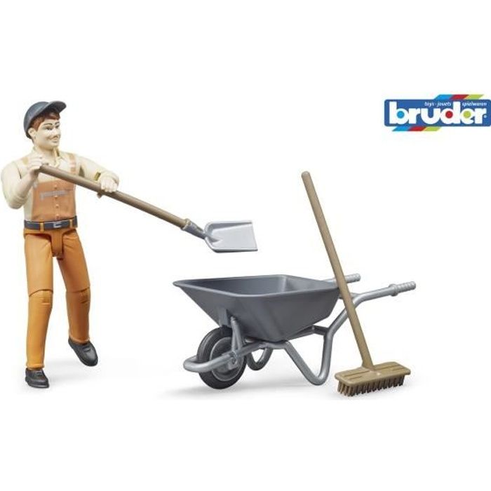 Bruder Figurine Jardinier avec Tondeuse à Gazon 62103