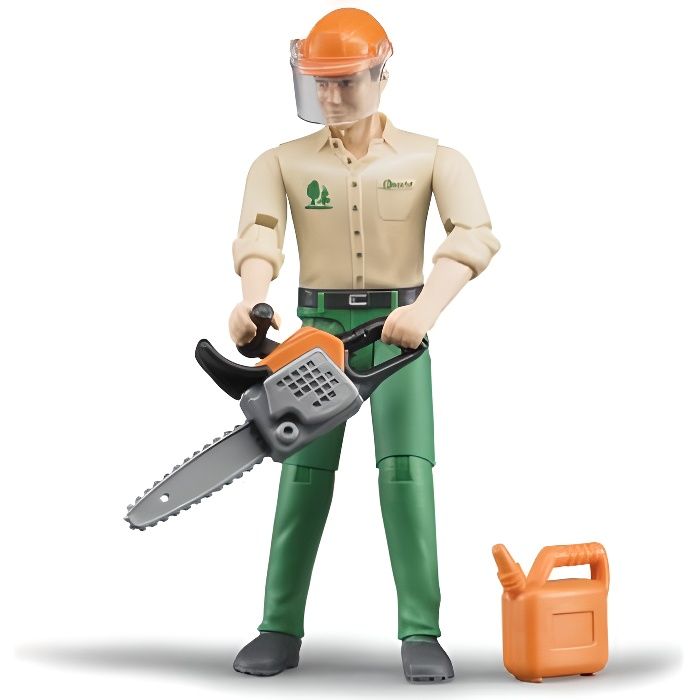 Bruder Figurine Homme avec Tronçonneuse, Casque et Bidon d'Essence 60030