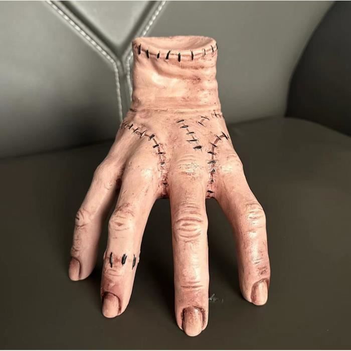 Décoration la Famille Mercredi Addams, Main en Latex Haute Simulation, Figurine Main Ornement Halloween Accessoires Main Décoration Sculpture Bureau pour la Décoration Intérieure