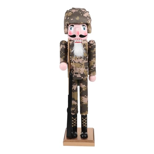 Mipcase Casse-Noisette en Bois Soldat 38 CM Décoration de Noël Traditionnelle Figurine Militaire Camouflée pour Bureau et Intérieur Présent Festif de Fête