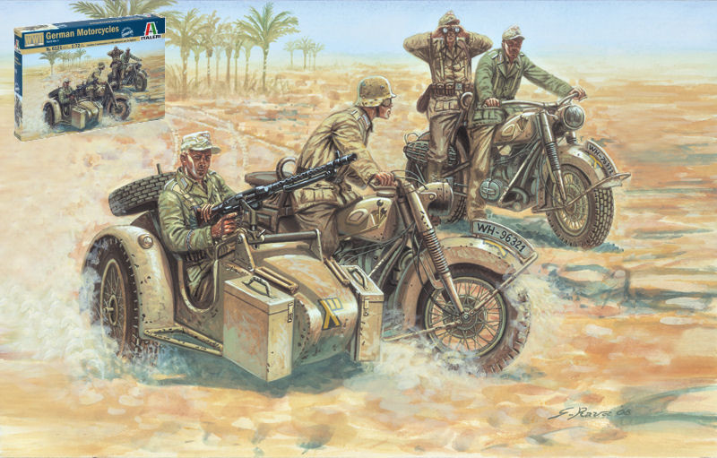 MODELISME FIGURINE MILITAIRE ITALIEN MOTOS ALLEMANDES WW II KIT 1:72