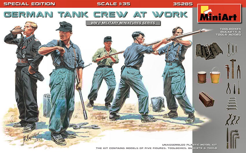 MODÈLE FIGURINE MILITAIRE MINIART ALLEMAND TANK CREW AT WORK KIT 1:35