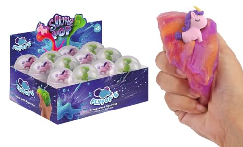 FLYPOP'S - Pack de 12 Pots de Slime avec Figurine - Pop - 031096PA - Multicolore - Licorne - Dinosaure - Jouet Enfant - Sensoriel - Cadeau - Anniversaire - Pâte Gluante - À Partir de 6 Ans