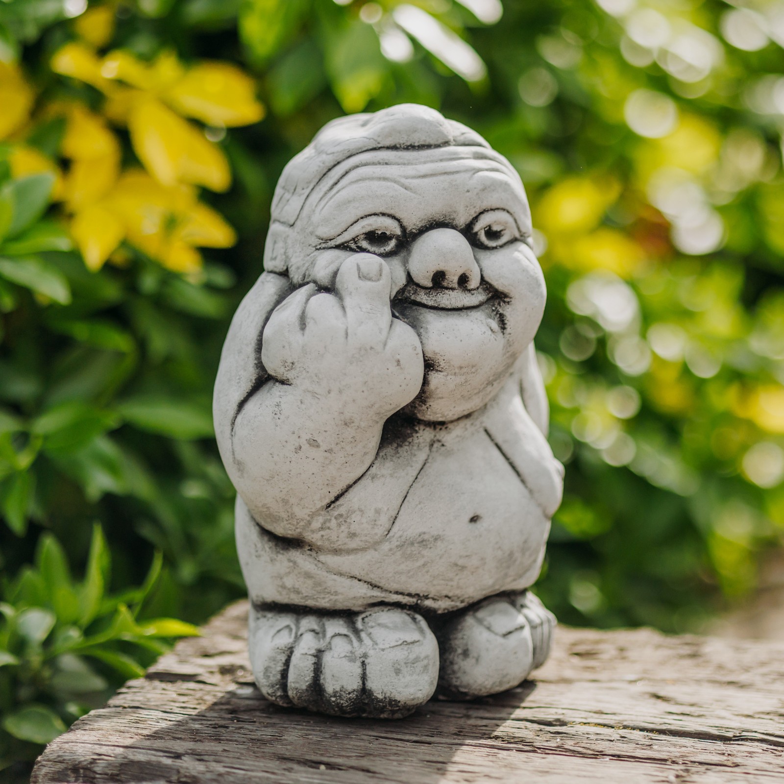 FABRIQ Figurine amusante de troll - Gnome avec doigt - 26 cm - Gris - Résistante aux intempéries - Décoration grotesque