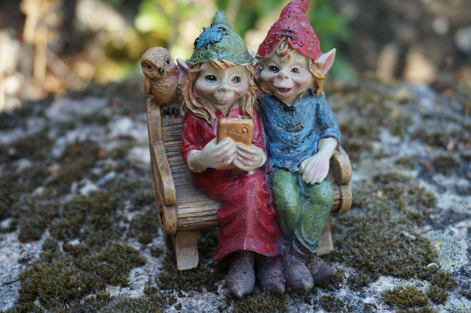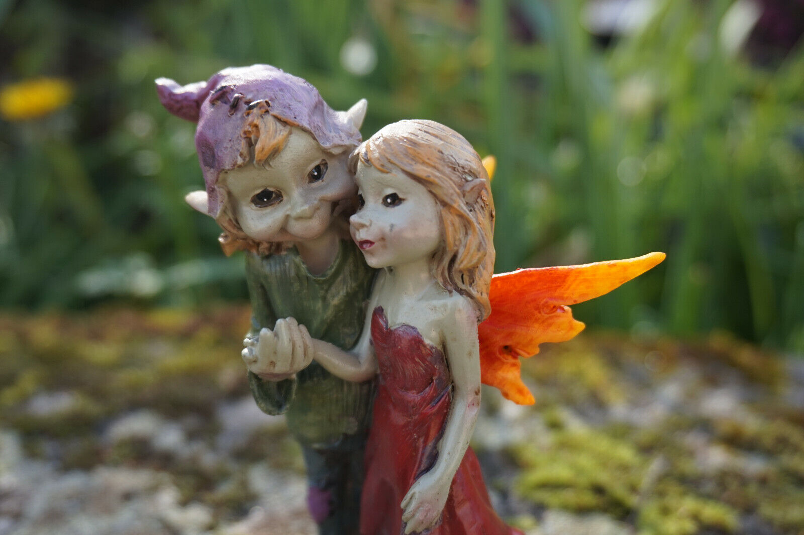 140074 FIGURINE TROLL COUPLE LOVE DOS A DOS AMOUR PIXIE ELFE PIXIES FEE