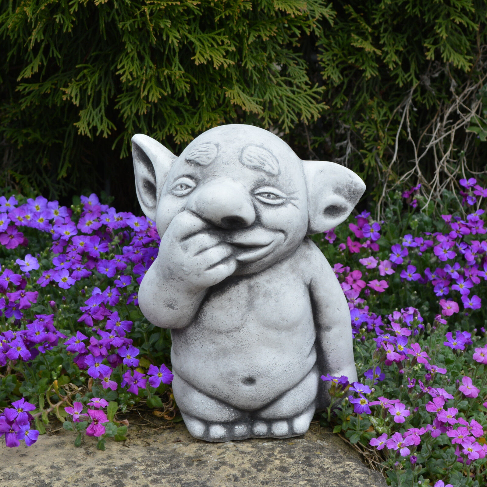 Troll tout bon lutin figurine en pierre 37 cm 16 kg gris béton blanc résistan...