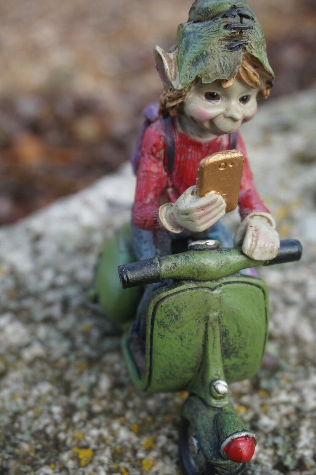 170207 FIGURINE TROLL SUR VESPA SCOOTER VERT PORTABLE PIXIE ELFE PIXIES DERNIER