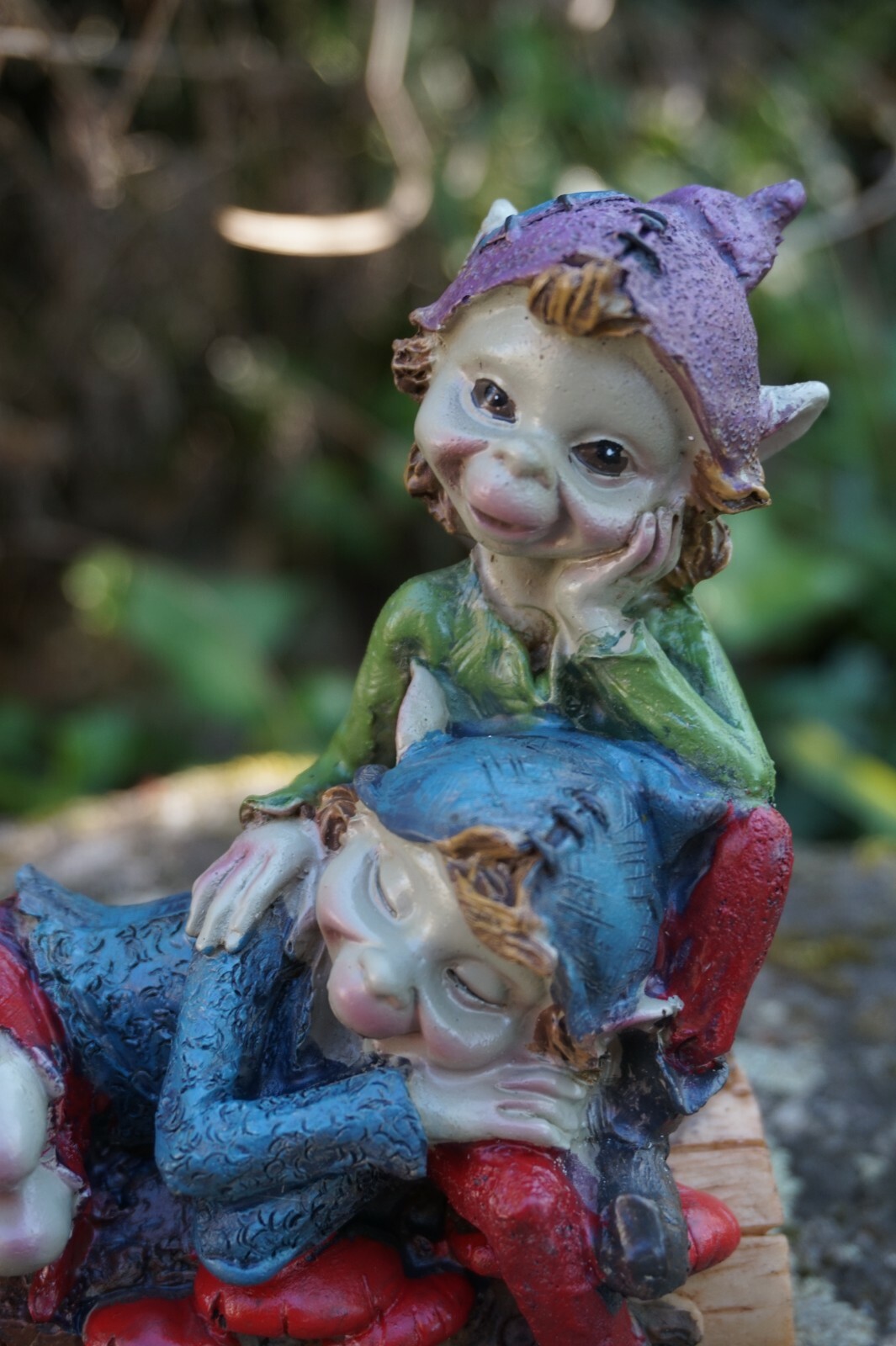 97249 FIGURINE TROLL PAPA AVEC SON ENFANT AMOUR CALIN PIXIE ELFE PIXIES DERNIER