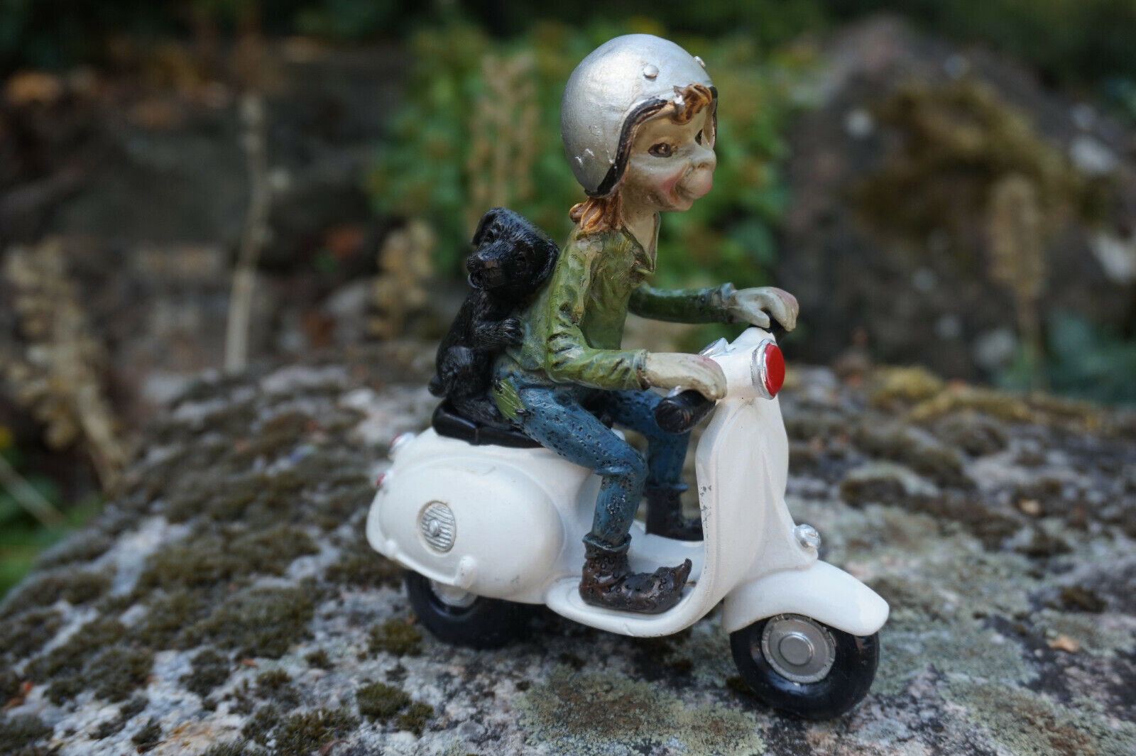 170219A FIGURINE TROLL SUR VESPA SCOOTER AVEC CHIEN PIXIE ELFE PIXIES