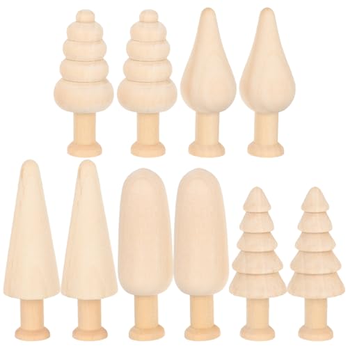 jojofuny Lot de 10 figurines en bois à peindre, pendentifs décoratifs en bois pour enfants, projets de bricolage créatifs avec surface lisse, champignons en bois et arbres de différentes tailles pour