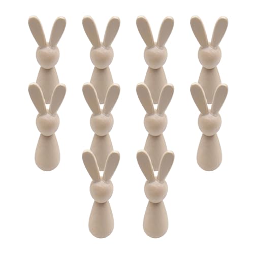 NUOBESTY Lot de 12 Figurines de Lapins en Bois Brut, Décoration Créative de Pâques, Poupées DIY à Peindre, Petites Figurines en Bois Lisse, Décor Saisonnier pour Maison et Fête
