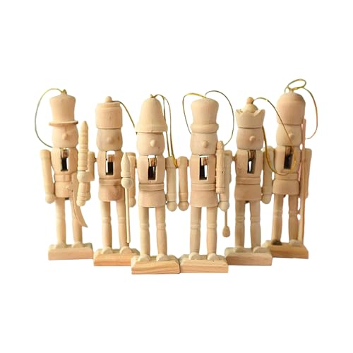 Kustimantu Lot de 6 casse-noisettes de Noël en bois à peindre soi-même, 13 cm, figurines de Noël, bricolage, décoration de Noël pour la décoration de la maison