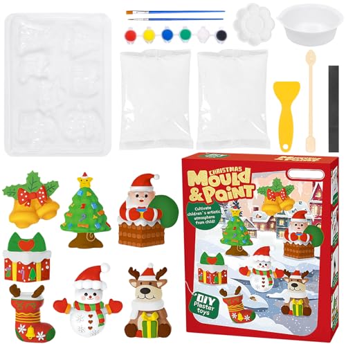 Kit de bricolage de Noël, figurines de plâtre à peindre, kit de moulage de plâtre de Noël avec 7 motifs, kit de peinture pour plâtre, figurines à peindre, bricolage de Noël, kit de peinture créatif à