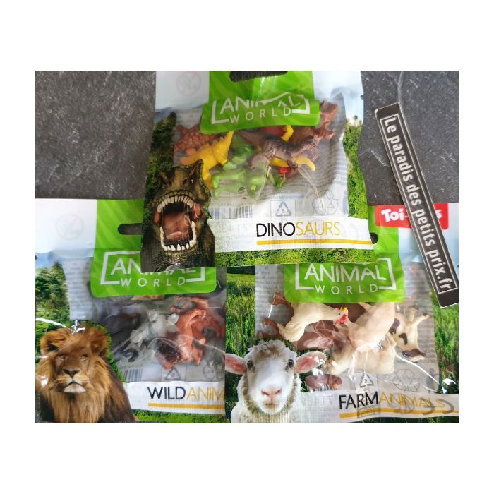 24 figurines animaux , 8 animaux de la ferme, 8 animaux sauvages , 8 dinosaures