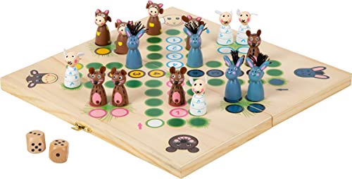 Small Foot 6257 Ludo «Animaux de la Ferme» en bois, jeu de société Ludo avec des animaux comme figurines, à partir de 3 ans