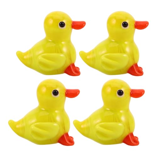 LOORGVEL Lot de 4 Figurines de Canards Miniatures en Verre : Animaux de la Ferme à Collectionner - Canard Jaune Miniature - Statuette Kawaii pour décoration de Bureau, Pot de succulentes, Panier de