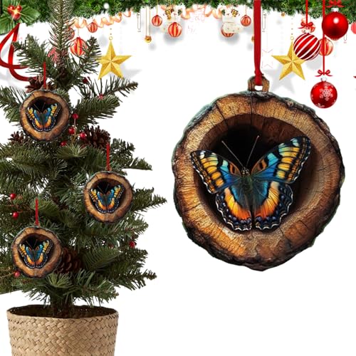 Noël pour arbre – Animaux dans un trou d'arbre | Figurines plates 2D en acrylique pour amis, exposition, saison, ferme, réunions de famille, maison, Noël