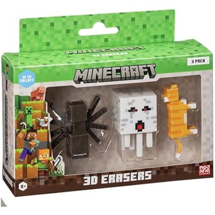 Gommes 3D - Minecraft - Lot de 3 paquets - Figurines de 5 cm - Accessoires scolaires - Cadeau pour enfants
