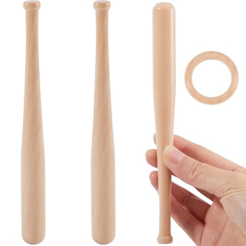GORGECRAFT 3 Batte de Baseball de 18cm 1 Anneaux de Baseball en Bois Non Finis Mini Batte de Baseball Non Peinte pour Peindre des Porte-Clés des Figurines d'action des Projets D'Artisanat des Sports