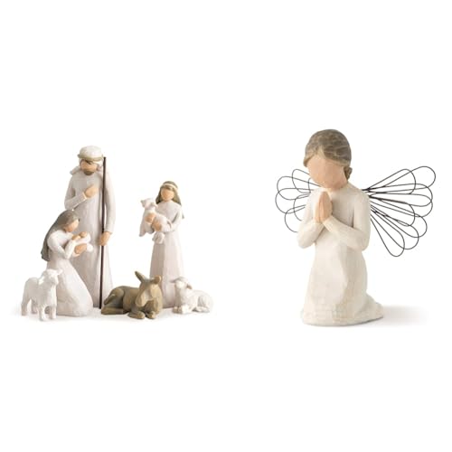 Willow Tree 26005 Ensemble de 6 Figurines Crèche Nativité & 26012 Figurine Ange de la Prière