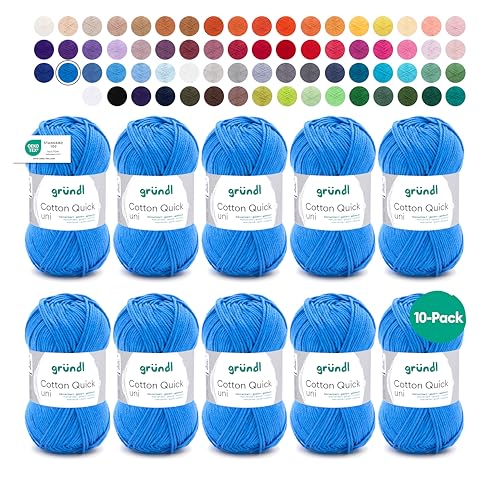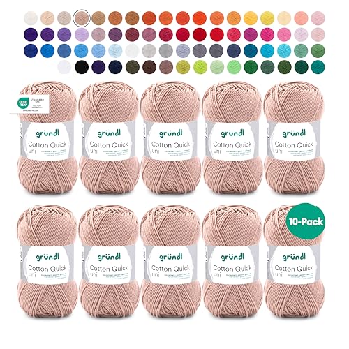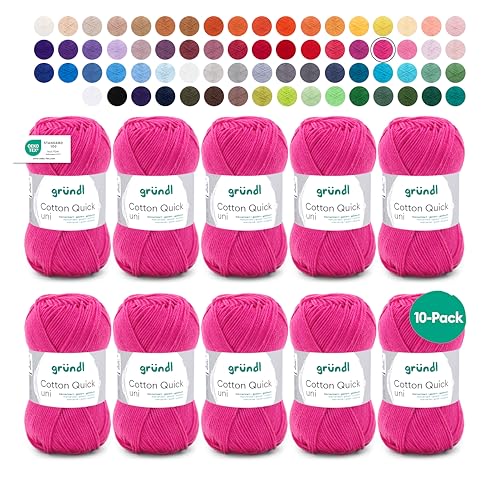 Gründl Laine Cotton Quick uni – laine fine pour crochet – fil à tricoter – fil à crocheter – brillante et douce pour la peau – 100 % coton – 10 pelotes 50 g / 125 m – taille d’aiguille 3-4 –laine