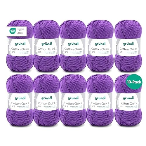 Gründl Laine Cotton Quick uni – laine fine pour crochet – fil à tricoter – fil à crocheter – brillante et douce pour la peau – 100% coton – 10 pelotes 50 g / 125 m – taille d’aiguille 3-4 –violet