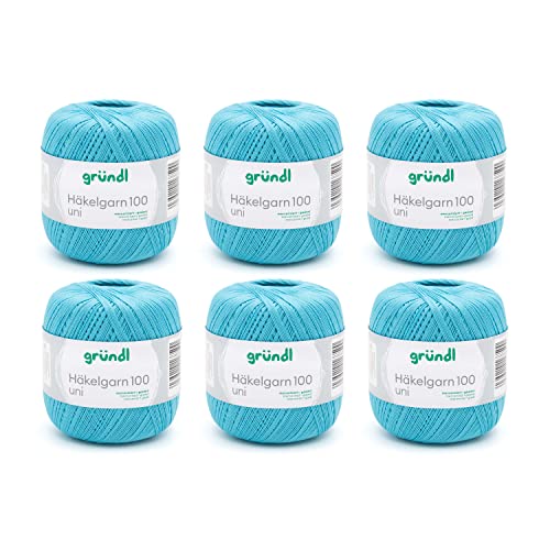 Gründl Laine Häkelgarn 100 – laine fine estivale pour le crochet – brillante et lavable – fil de coton – 100% coton – 6 pelotes 100 g / 566 m – taille d’aiguille 1,5 – 2 - Turquoise