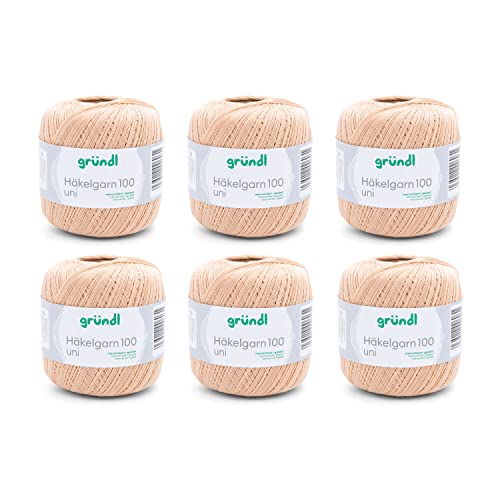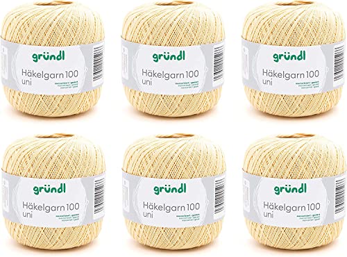 Gründl Laine Häkelgarn 100 – laine fine estivale pour le crochet – brillante et lavable – fil de coton – 100% coton – 6 pelotes 100 g / 566 m – taille d’aiguille 1,5 – 2 - Crème