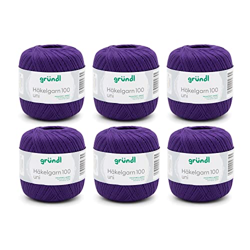 Gründl Laine Häkelgarn 100 – laine fine estivale pour le crochet – brillante et lavable – fil de coton – 100% coton – 6 pelotes 100 g / 566 m – taille d’aiguille 1,5 – 2 - Violet