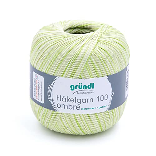 Gründl Fil à crochet 100 ombré (fil de coton mercerisé pour crochet en 100% coton, 100 g/566 m, taille des aiguilles : 1,5-2, 1 x 100 g) Pistache