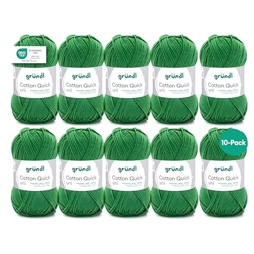 Gründl Laine Cotton Quick uni – laine fine pour crochet – fil à tricoter – fil à crocheter – brillante et douce pour la peau – 100% coton – 10 pelotes 50 g / 125 m – taille d’aiguille 3-4 –Fern