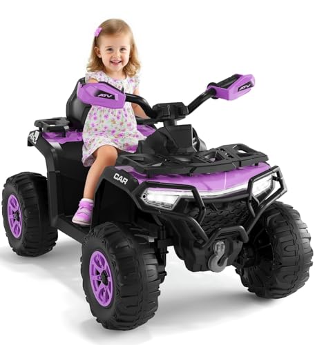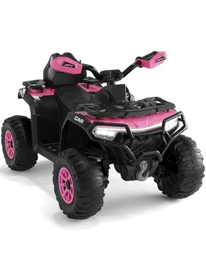 Garvee Quad électrique pour Enfant, 12 V, 4 Roues, Tout-Terrain, avec télécommande, 2 Moteurs, Phare LED, Musique, Connexion sans Fil, USB, Suspension, Drapeau Lumineux
