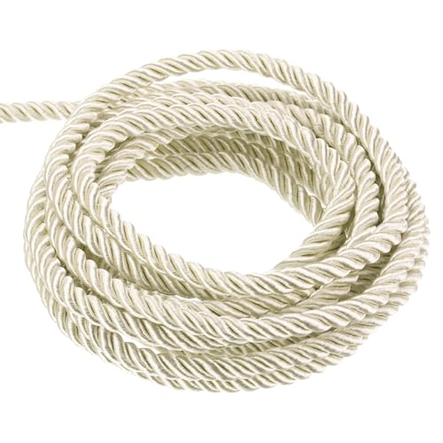 QUARKZMAN Galons en Corde Torsadée, 11 Yards 3mm 3 Plis Tresse Corde Brillante Fil pour Sac Cadeau Rideau Décoration de Noël, Blanc Crème - 10m