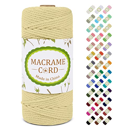 LEREATI Corde Macramé 3mm x 100m, Fil Macramé 3mm Ficelle Macramé Cordon Coton, 4-Ply Fil de Coton pour Tenture Murale, Rideau, Tapisserie, Décoration de Chambre à Coucher et Mariage (Jaune Clair)