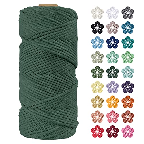 LEREATI Corde Macramé 4mm x 100m, Fil Macramé Coton Corde Naturelle Cordelette Ficelle, Macrame Cordon pour Bricolage Tissage, Rideau, Porte Plante Mural, Artisanat, Décoration Bohème (Vert foncé)