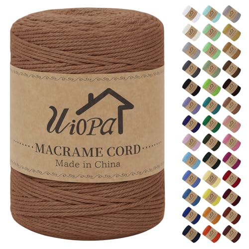 Uiopa Corde Macramé 3mm x 300m Fil Macrame Coton Naturel Ficelle Cordelette Couture Bricolage Cordon pour Macrame Mural, Porte Plante Mural, Decoration Mariage, Rideau, Emballage Cadeau (Rouge brique)