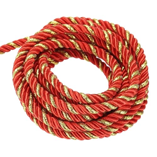 QUARKZMAN Galons en Corde Torsadée, 11 Yards 5mm 3 Plis Tresse Corde Brillante Fil pour Sac Cadeau Rideau Décoration de Noël, Rouge - 10m