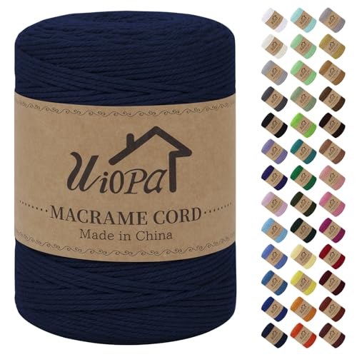 Uiopa Corde Macramé 3mm x 300m Fil Macrame Coton Naturel Ficelle Cordelette Couture Bricolage Cordon pour Macrame Mural, Porte Plante Mural, Decoration Mariage, Rideau, Emballage Cadeau (Bleu foncé)