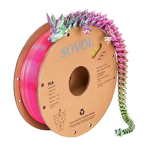 Sovol Silk Tri Color PLA Filament 1.75mm, Filament pour imprimante 3D 1kg (2.2LBS), Soie Filament PLA Bronze/Pourpre/Vert Tri-couleur Coextrusion +/-0.03mm
