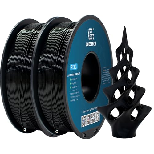 GEEETECH PETG Filament 2KG, 1,75 mm, filament pour imprimante 3D, 1 kg par bobine, 2 bobines, noir et noir