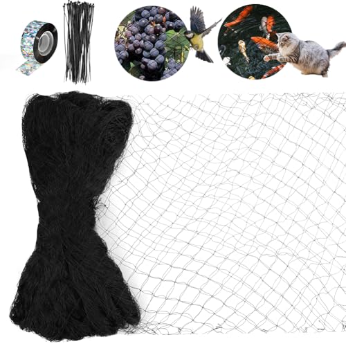 Filet Anti Oiseaux, 10m x 4m Filet Poulailler, Filet de Protection pour Bassin à Mailles Fines, Filet de Protection Les Potager et Fruits avec 50 Attaches de câble et 4 piquets de Fixation de Jardin