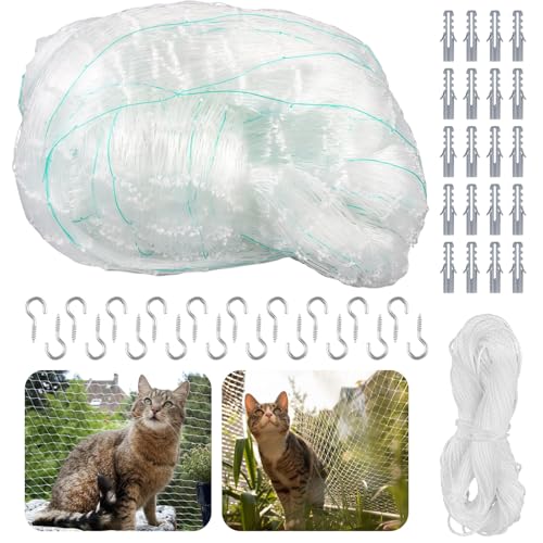 Aystkniet Filet de protection pour chat pour balcon, 16 x 3 m, avec corde de fixation, clous, serre-câbles, filet de balcon, résistant aux morsures et à la déchirure, résistant aux UV, pour fenêtre,