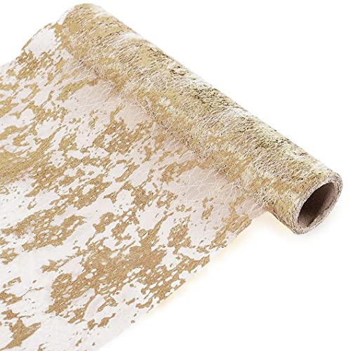 Chemin De Table Filet avec Feuille d'or,28cmx10m Chemin De Table Polyester,Ruban De Table Métallisé Décoration pour Fête,Célébrations,Anniversaire, Mariage, Noël, Fêtes De Bébé,DIY,etc.
