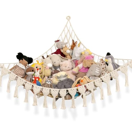 JurciCat Rangement Peluche Filet Peluche à Suspendre pour Chambre D'enfant Chambre à Coucher (Blanc)
