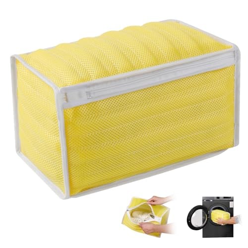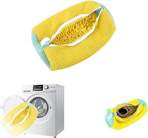 Sac Linge Machine à Laver Réutilisable, Filet Linge Chaussures Protéger, Sac Lavage Chaussures, Shoe Cleaning Bag pour Tous Types de Chaussures (1PC, Jaune)