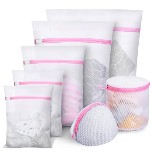 7 Sacs à linge Filet à linge pour machine à laver,Laundry Bag pour articles délicats,soutien-gorge,chemisier,sous-vêtements,chaussures,vêtements de bébé,etc (Rose,1XL,2L,2M,2BH)