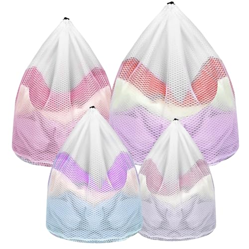 AiQInu 4 Pièces Filet a Linge, Sac à Linge avec Cordon de Serrage, Filet Linge Machine a Laver, Sac de Lavage Réutilisable en Maille, Filet de Lavage, Fin pour Machine à Laver